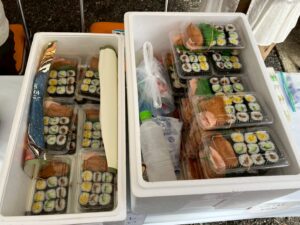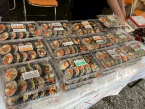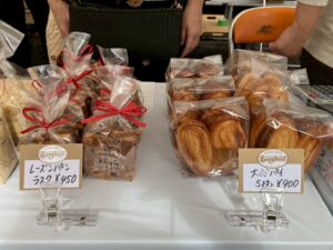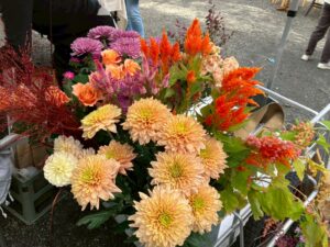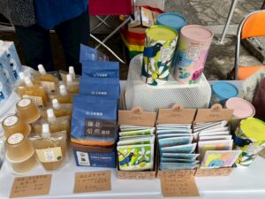 今回も会場前からお並びくださった地域の方々もあり、会場は終始あたたかな笑顔と賑わいに包まれました。地元で長く親しまれているお店から、今回初めて参加された新入会員の方々まで、お弁当やパン、お菓子、焼いも、お花、お茶、コーヒーなどそれぞれの想いが込められた品々が並びました。